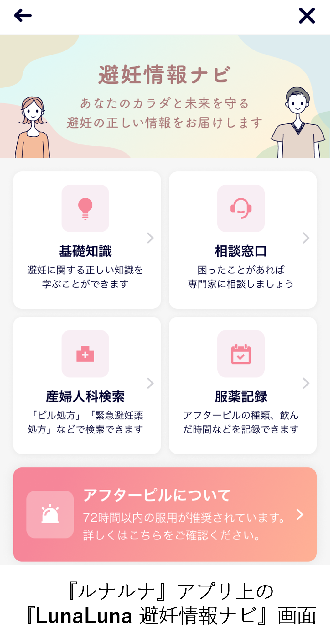 ◆避妊に関する正しい知識提供から、緊急避妊薬服薬後のサポートまで、『ルナルナ』が包括的支援を開始